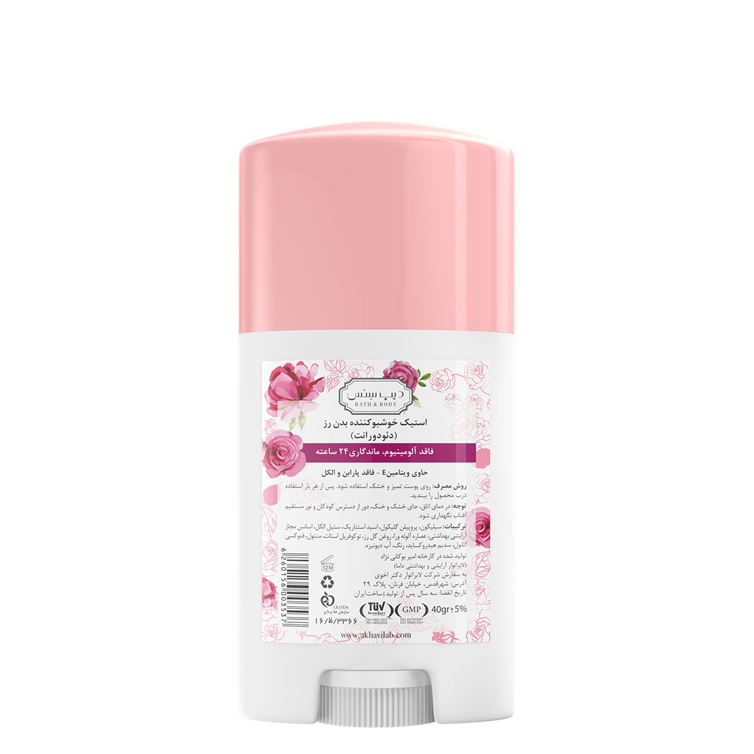 استیک دئودورانت گلاب دیپ سنس با ترکیبی از مواد طبیعی و مغذی، گزینهای عالی برای مراقبت از پوست است. عصاره آلوئهورا با خاصیت مرطوبکنندگی و تسکیندهندگی خود، به نرمی و آرامش پوست کمک میکند و از التهاب آن جلوگیری میکند.