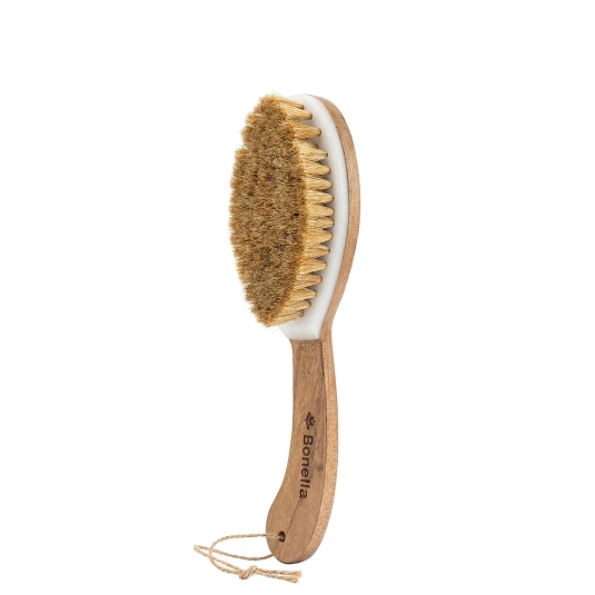 * طراحی ارگونومیک و باکیفیت: دسته چوبی منحنی شکل این محصول (برند بونلا) به شما اجازه می‌دهد به راحتی به نقاطی مثل پشت کمر دسترسی داشته باشید. همچنین بند آویز انتهای دسته، نگهداری آن را در حمام آسان می‌کند.